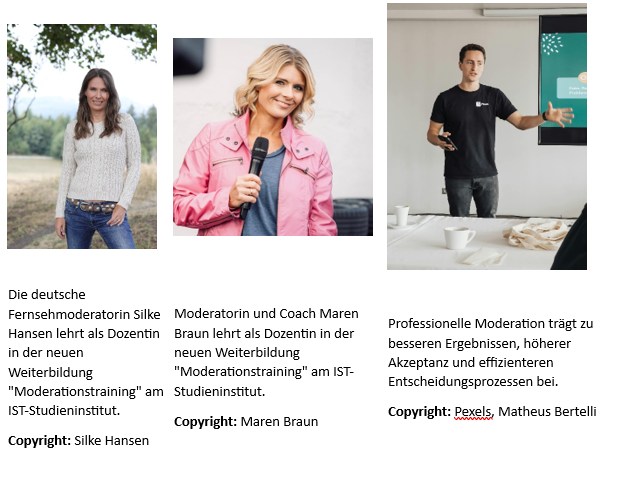 „Führung bedeutet heute nicht mehr, Antworten vorzugeben, sondern Räume zu schaffen, in denen gemeinsam tragfähige Lösungen entstehen können“, erklärt Silke Hansen, ARD-Wettermoderatorin und Dozentin im Moderationstraining am IST-Studieninstitut. Professionelle Moderation trägt dabei zu besseren Ergebnissen, höherer Akzeptanz und effizienteren Entscheidungsprozessen bei. Teams fühlen sich stärker eingebunden, Verantwortung wird geteilt und Konflikte können frühzeitig erkannt werden.
